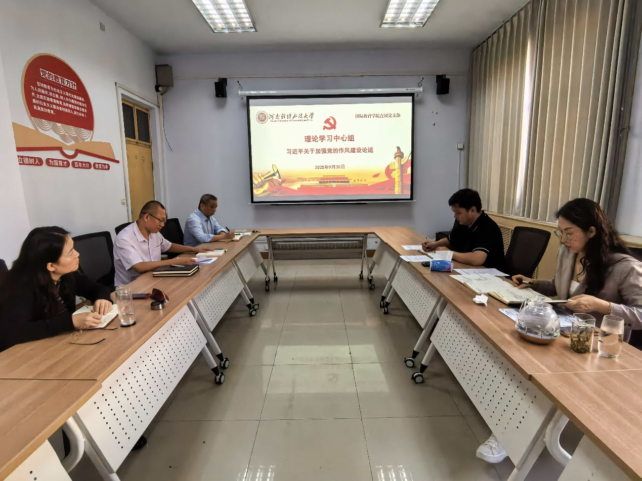 9月30日,学院直属党支部书记鲁守璞主持召开理论学习中心组(扩大)集体学习会,专题学习习近平关于加强党的作风建设的重要论述,学院直属党支部理论学习中心组成员参加。 会前,中心组成员认真进...